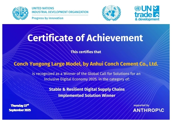 海螺榮膺聯(lián)合國《2025包容性數(shù)字經(jīng)濟(jì)全球解決方案征集》最佳實(shí)施方案獎(jiǎng)